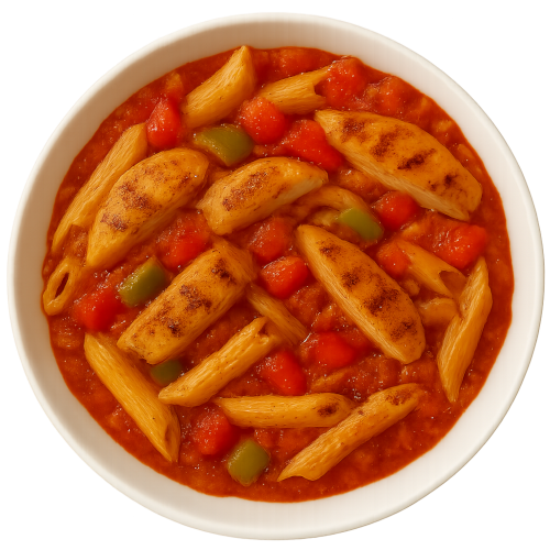 gegrillte Putenstreifen, Zwiebeln, Paprika in Hackfleischtomaten-Soße